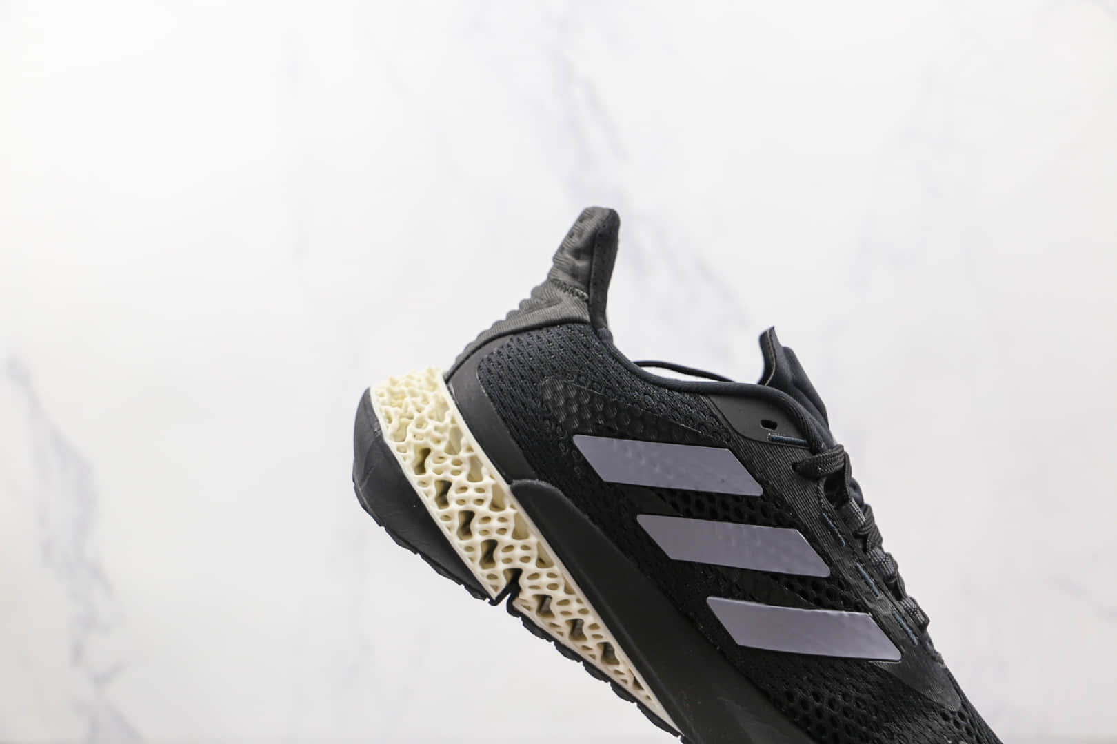 阿迪达斯4D打印4D FWD镂空式阿迪达斯adidas Ultra 4D Primeknit 4DFWD款针织呼吸面套脚休闲运动慢跑鞋材料层组合镂空式鞋底致敬全新科技4D打印技术。