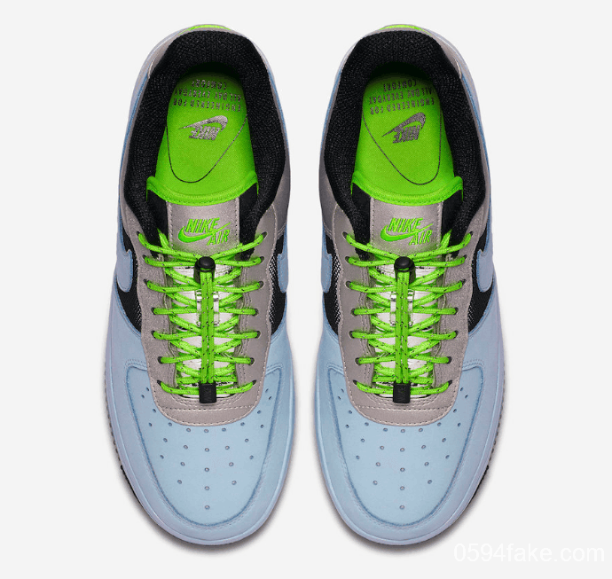 荧光绿抽绳鞋带在婴儿蓝的衬托下格外显眼,散发出一股机能风格,鞋垫采用同色调呈现,令人眼前一亮。