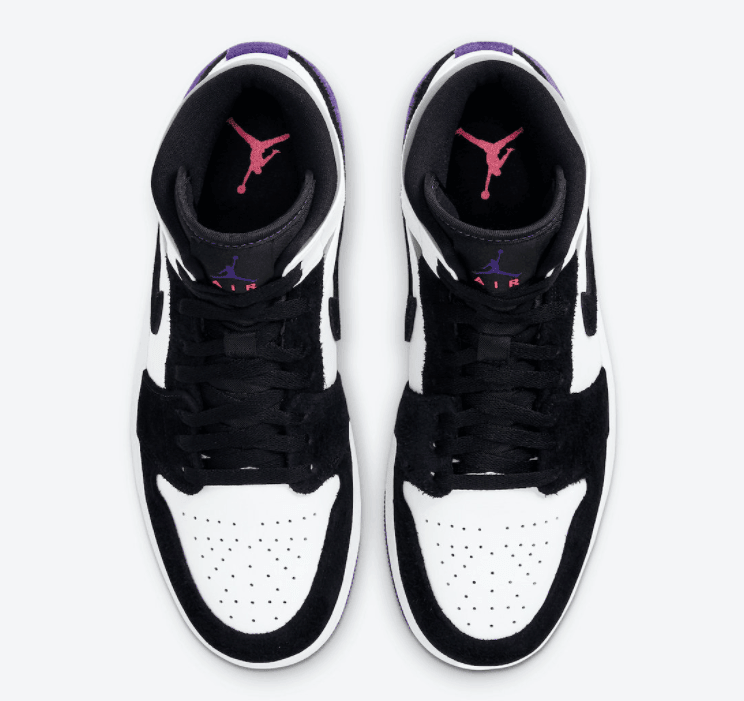 此前,我们报道了一双由黑、白、紫三色拼接打造的Air Jordan 1 Mid。