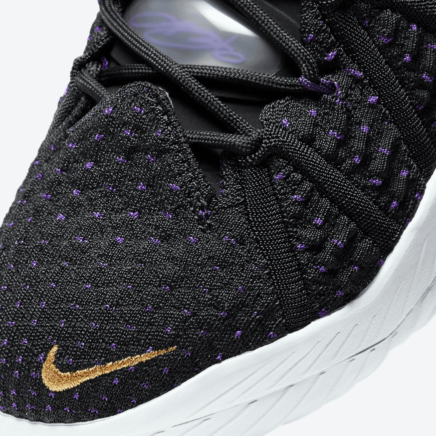 黑色Knitposite 2.0鞋面轻便透气,鞋头及侧后跟处点缀金色Swoosh,鞋身后半部分采用紫色装扮,呈现出浓郁的湖人氛围。