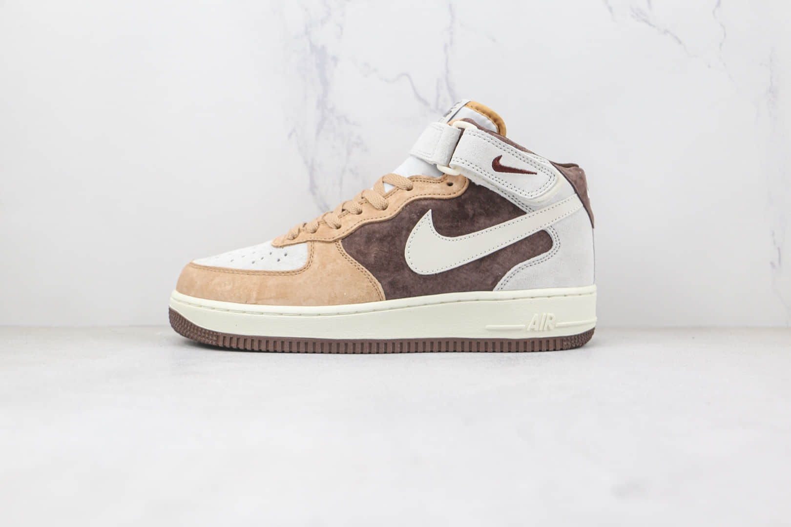 耐克Nike Air Force 1’07 Mid纯原版本中帮空军一号麂皮米白褐色板鞋内置气垫 货号:AL6896-556
