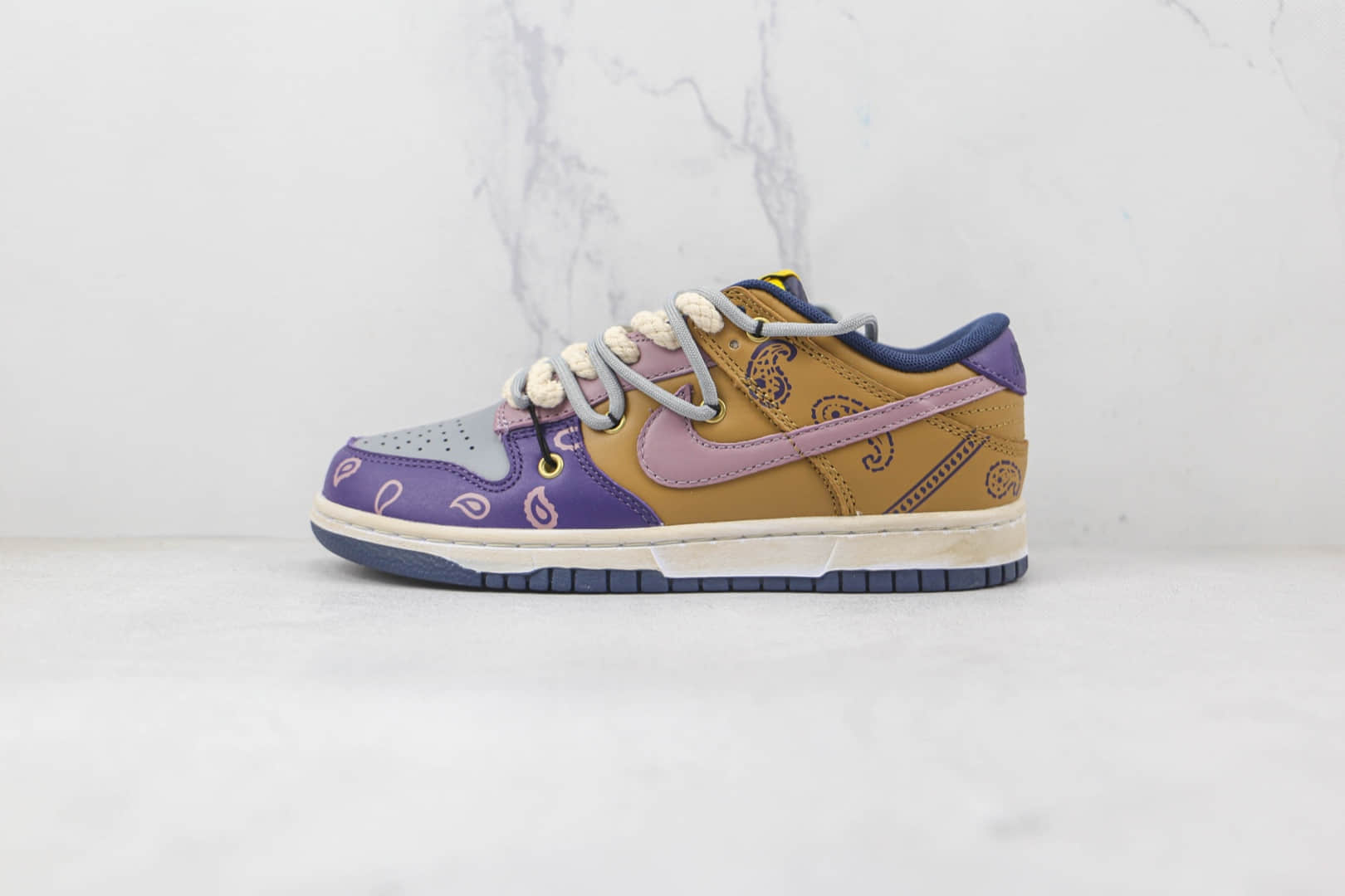 耐克Nike Dunk Low紫棕拼接腰果花扣篮系列低帮休闲运动滑板板鞋,该定制版球鞋选用原鞋款为Dunk Low Retro Hyper Cobalt男款此款球鞋采用喷绘和手绘等工艺将腰果花潮流街头元素融入鞋身,米色与Travis Scott(TS)麻制鞋带凸显百搭,配合Off-White(OW)解构鞋带孔整鞋色彩搭配舒适,全面对接潮流搭配,助力出街。定制球鞋可以正常穿洗,穿着过程中尽量避免剧烈运动以及尖锐的物体划伤,请避免用高浓度有机溶剂擦洗清洗时建议使用柔软的毛刷配合浓度适宜的清洗剂清洁。